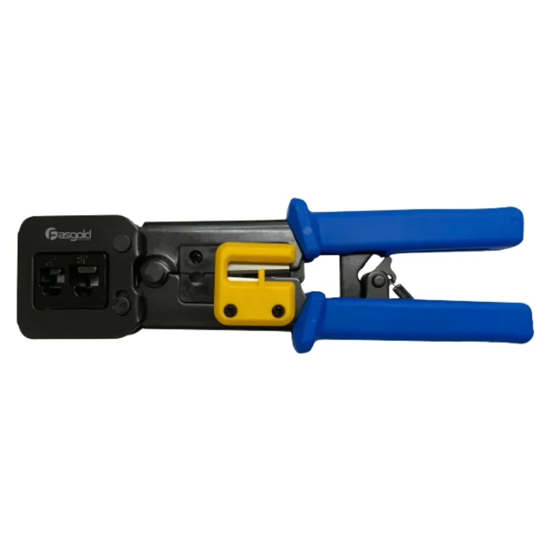 Nosso alicate crimpador é ideal para uso com conectores de frente vazada ou perfurada, como conectores retos ou vazados. Essa combinação otimiza a eficiência da